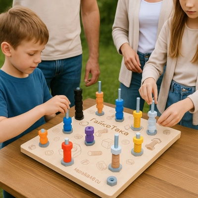 Гайкотека — деревянная стратегическая игра для 2, 4 и более игроков. Логика, скорость и ловкость в одном игровом поле! «Гайкотека» — это не просто настольная игра. Это семейство игр на одном уникальном деревянном поле, где каждый режим раскрывает новые качества: от хладнокровной стратегии до азартной гонки на скорость.