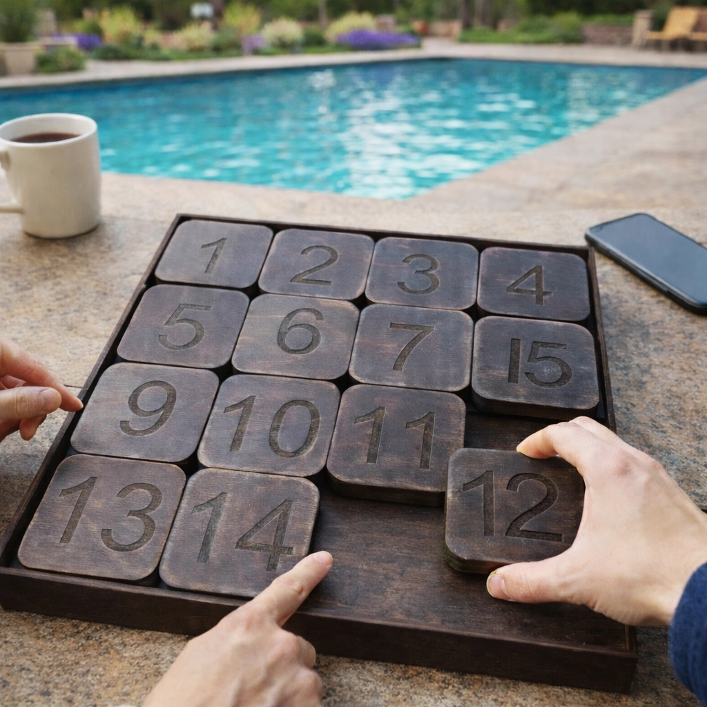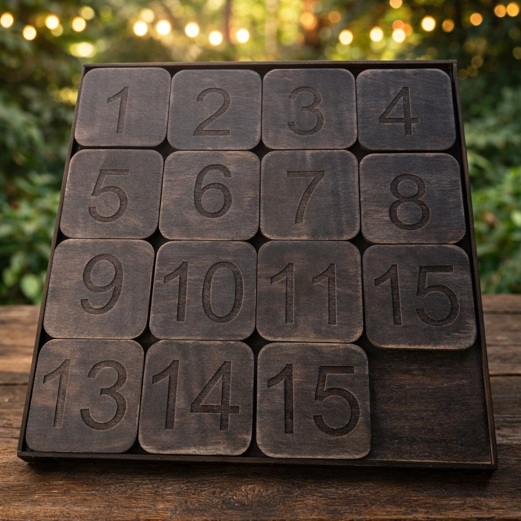 Перемешай. Подумай. Передвинь. Собери по порядку — и стань чемпионом логики.«Пятнашки» — это не просто деревянная коробка с цифрами — это легендарная головоломка, перерождённая в роскошную ручную версию из натурального дерева. Тяжёлые, гладкие фишки с глубокой гравировкой цифр, чёрный матовый оттенок, идеальная посадка — всё создано для того, чтобы вы не могли оторваться. Забудьте про телефоны — здесь есть только вы, ваш мозг и 15 квадратиков, которые нужно собрать по порядку.